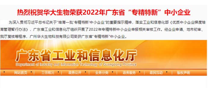 喜報丨祝賀華大生物榮獲廣東省“專精特新”中小企業和廣州市“專精特新”扶優計劃培育企業