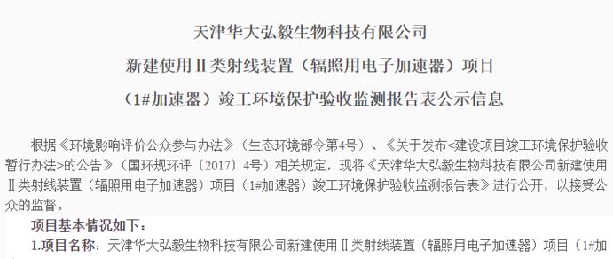 桂林華大生物科技有限公司使用電子加速器輻照項目竣工環境保護驗收信息公示